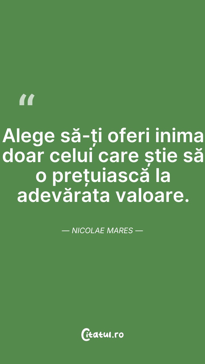 Alege să-ți oferi inima doar celui care știe ... Citește tot citatul >
