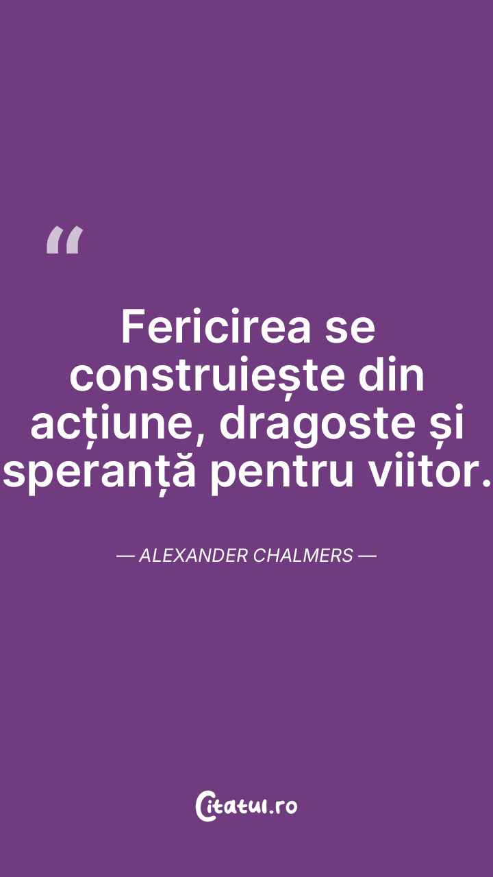 Fericirea se construiește din acțiune, dragos ... Citește tot citatul >