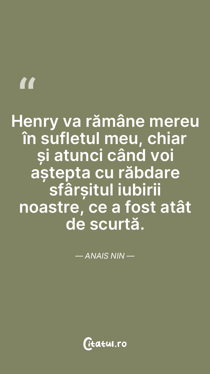 Henry nu mă poate face s-o iubesc mai puţin, ... Citește tot citatul >