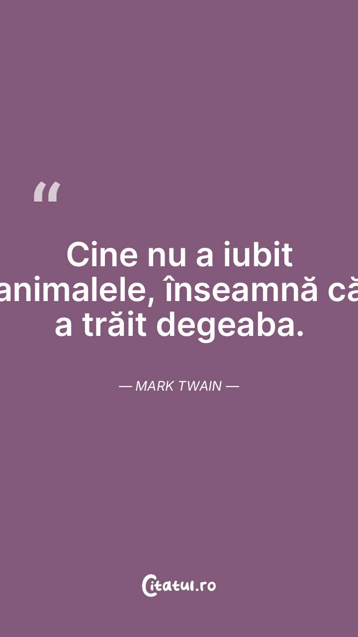 Cine nu a iubit animalele, înseamnă că a trăi ... Citește tot citatul >