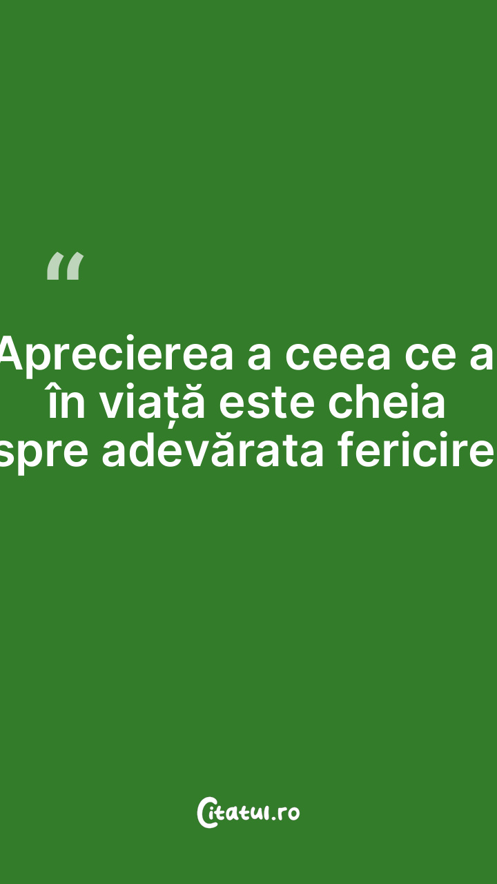 Aprecierea a ceea ce ai în viață este cheia s ... Citește tot citatul >