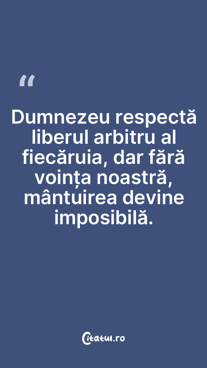 Dumnezeu respectă liberul arbitru al fiecărui ... Citește tot citatul >