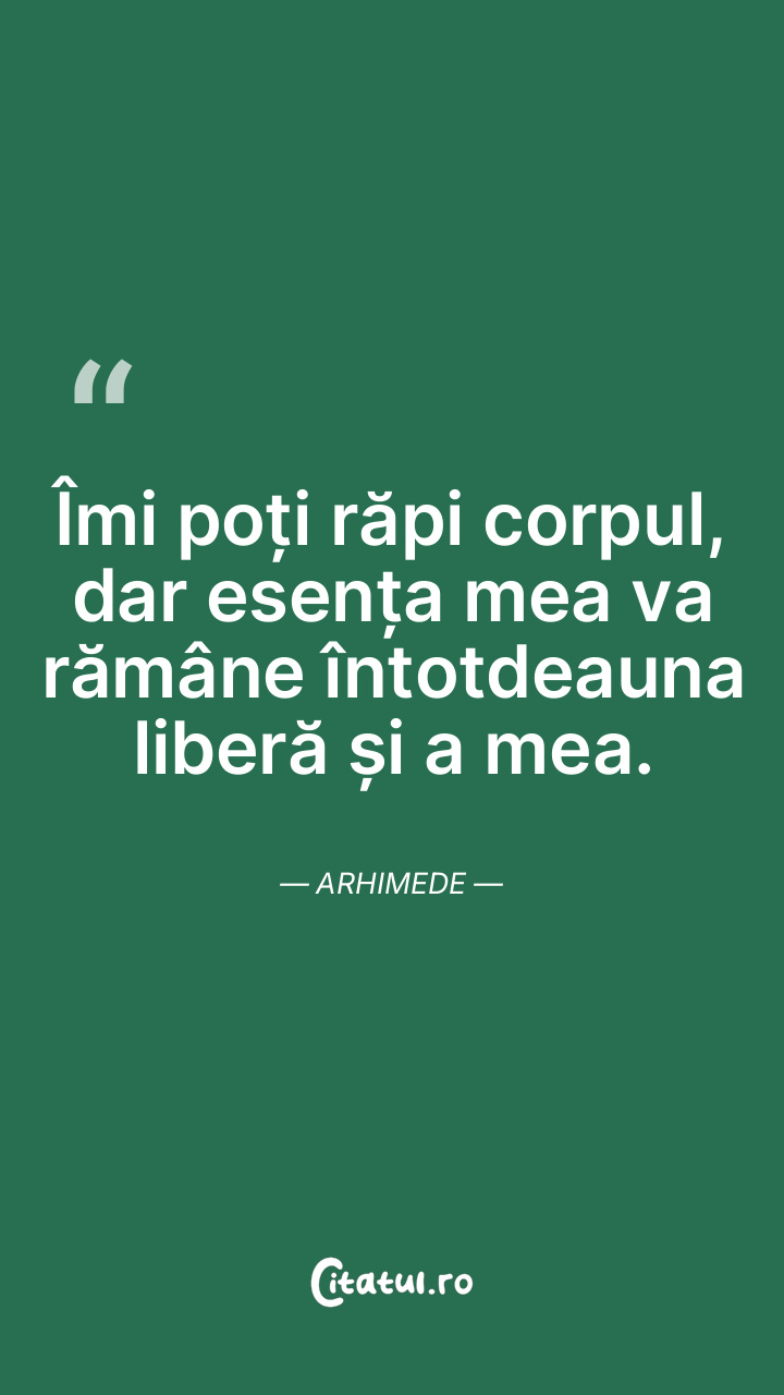 Îmi poți răpi corpul, dar esența mea va rămân ... Citește tot citatul >