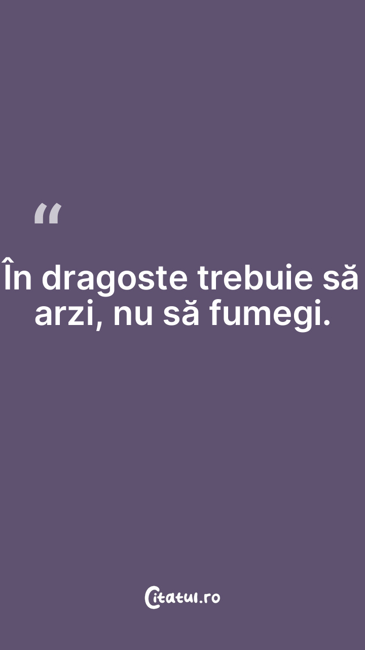În dragoste trebuie să arzi, nu să fumegi.