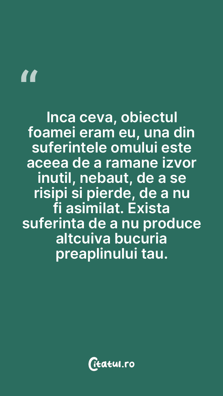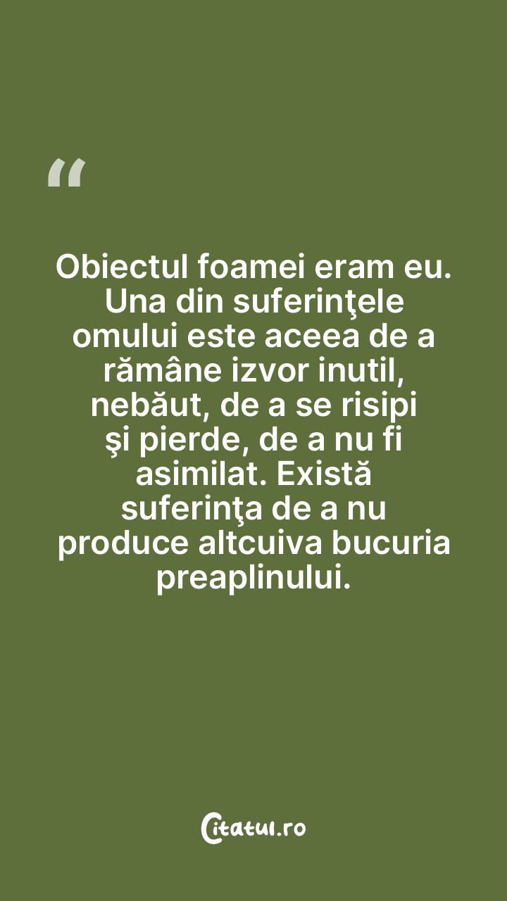 Obiectul foamei eram eu. Una din suferinţele ... Citește tot citatul >