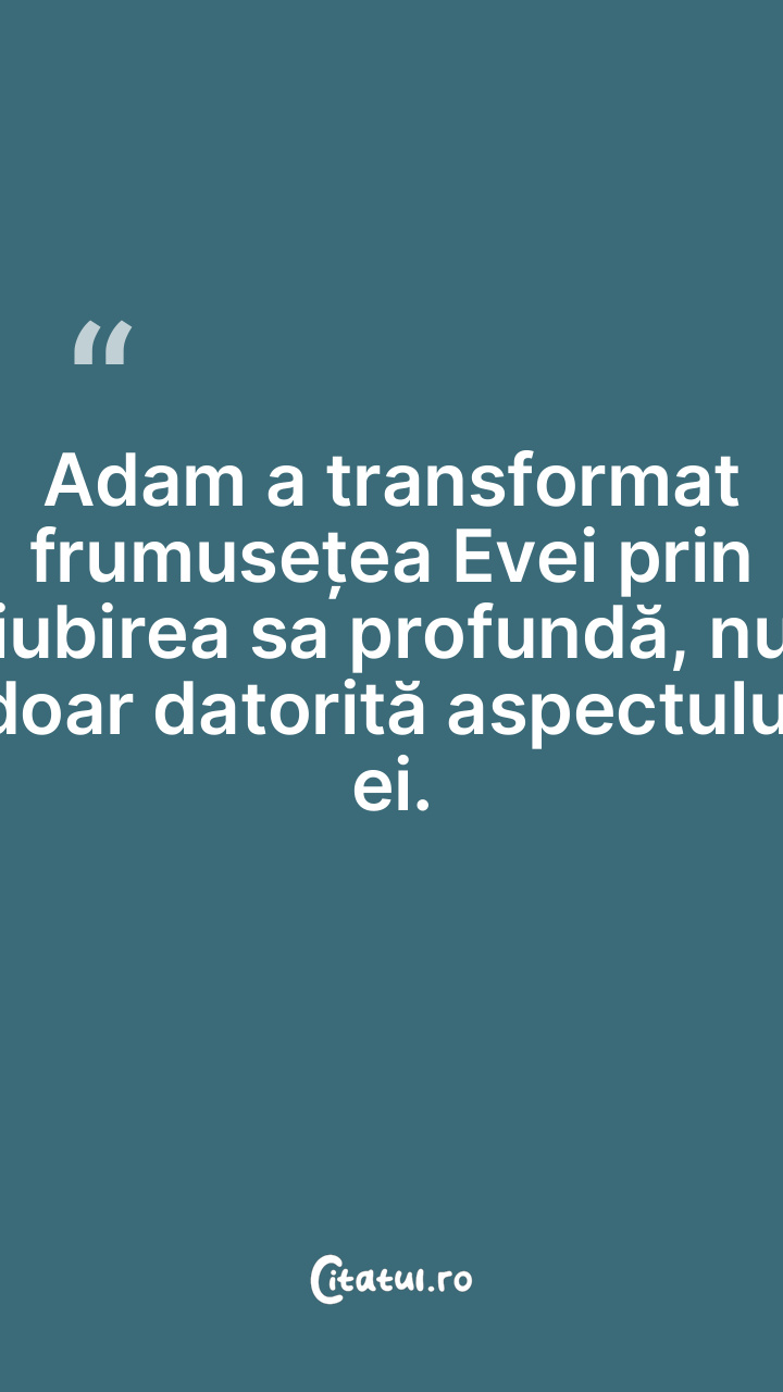 Adam a transformat frumusețea Evei prin iubir ... Citește tot citatul >