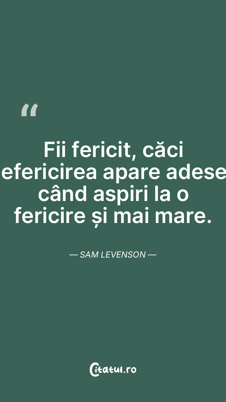 Fii fericit, căci nefericirea apare adesea câ ... Citește tot citatul >