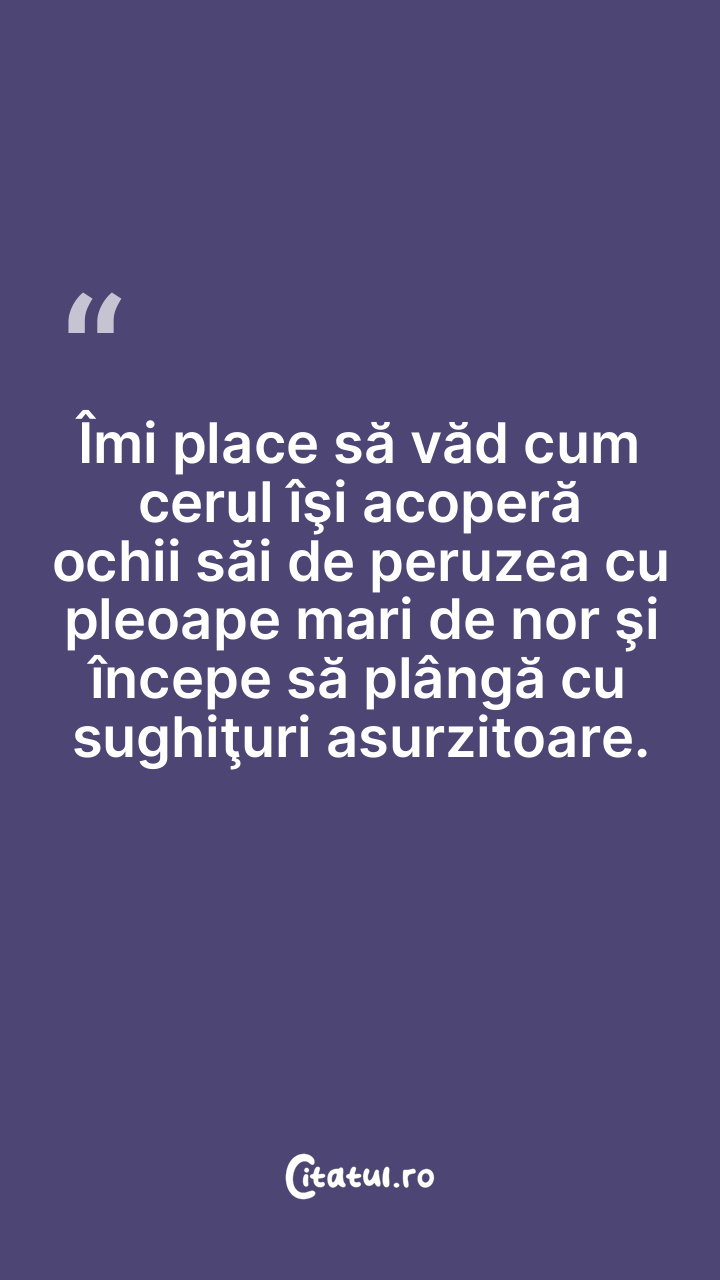 Îmi place să văd cum cerul îşi acoperă ochii ... Citește tot citatul >