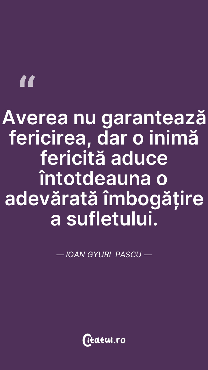 Averea nu garantează fericirea, dar o inimă f ... Citește tot citatul >