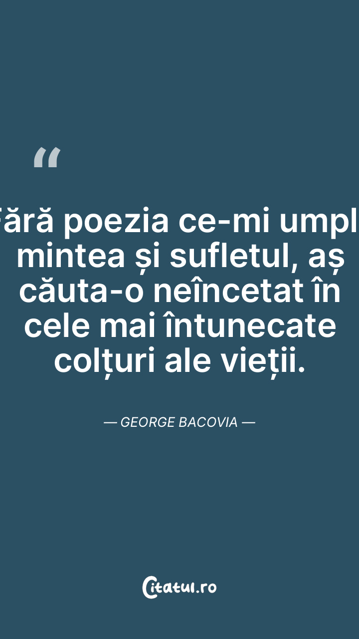 Fără poezia ce-mi umple mintea și sufletul, a ... Citește tot citatul >