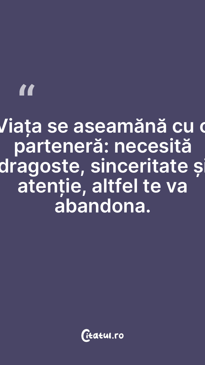 Viața se aseamănă cu o parteneră: necesită dr ... Citește tot citatul >