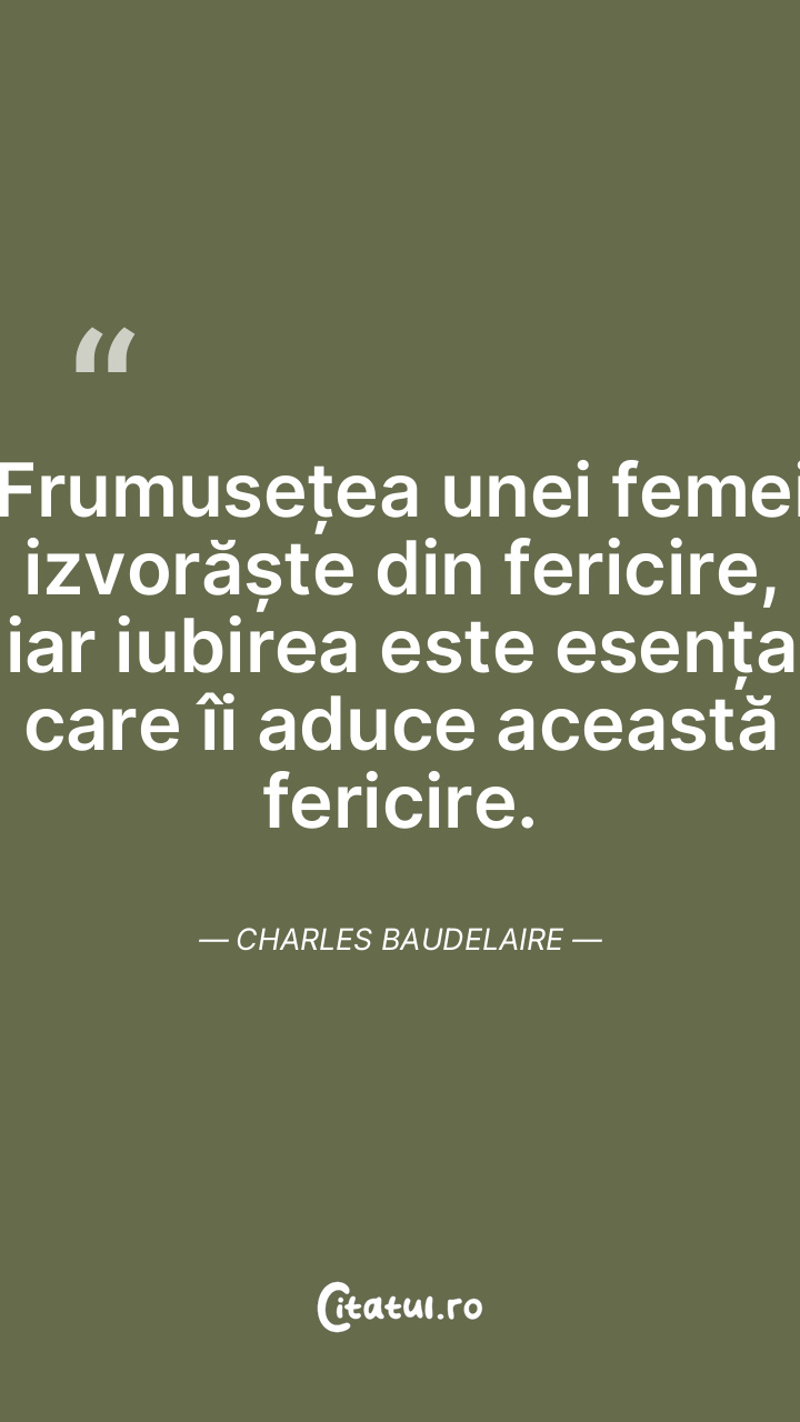 O femeie este poezia vieții. Charles Baudelai ... Citește tot citatul >