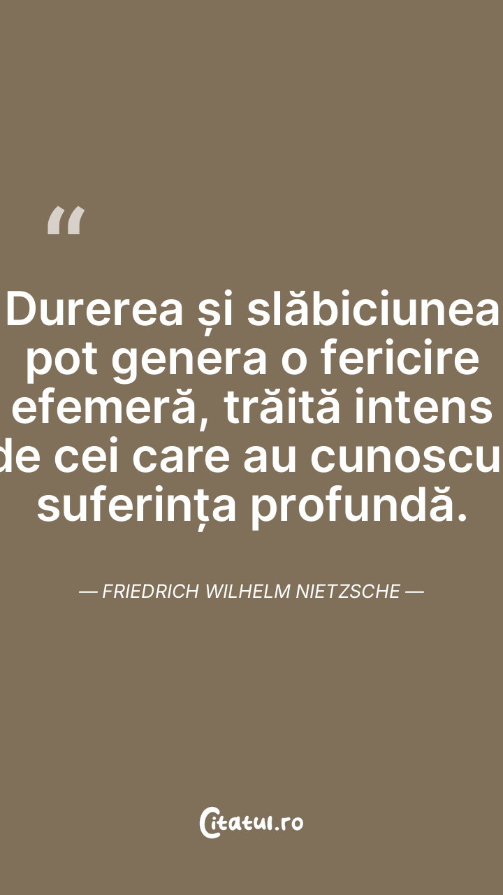 Durerea și slăbiciunea pot genera o fericire ... Citește tot citatul >
