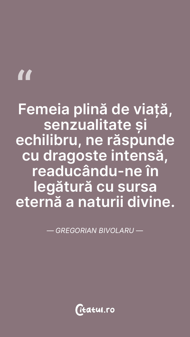 Femeia plină de viață, senzualitate și echili ... Citește tot citatul >