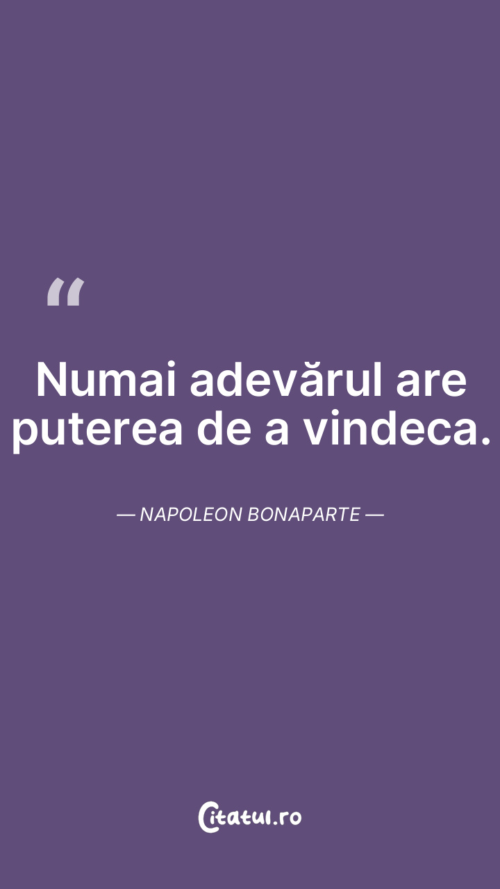 Numai adevărul are puterea de a vindeca. Napo ... Citește tot citatul >