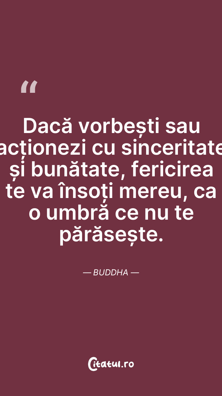 Dacă vorbești sau acționezi cu sinceritate și ... Citește tot citatul >