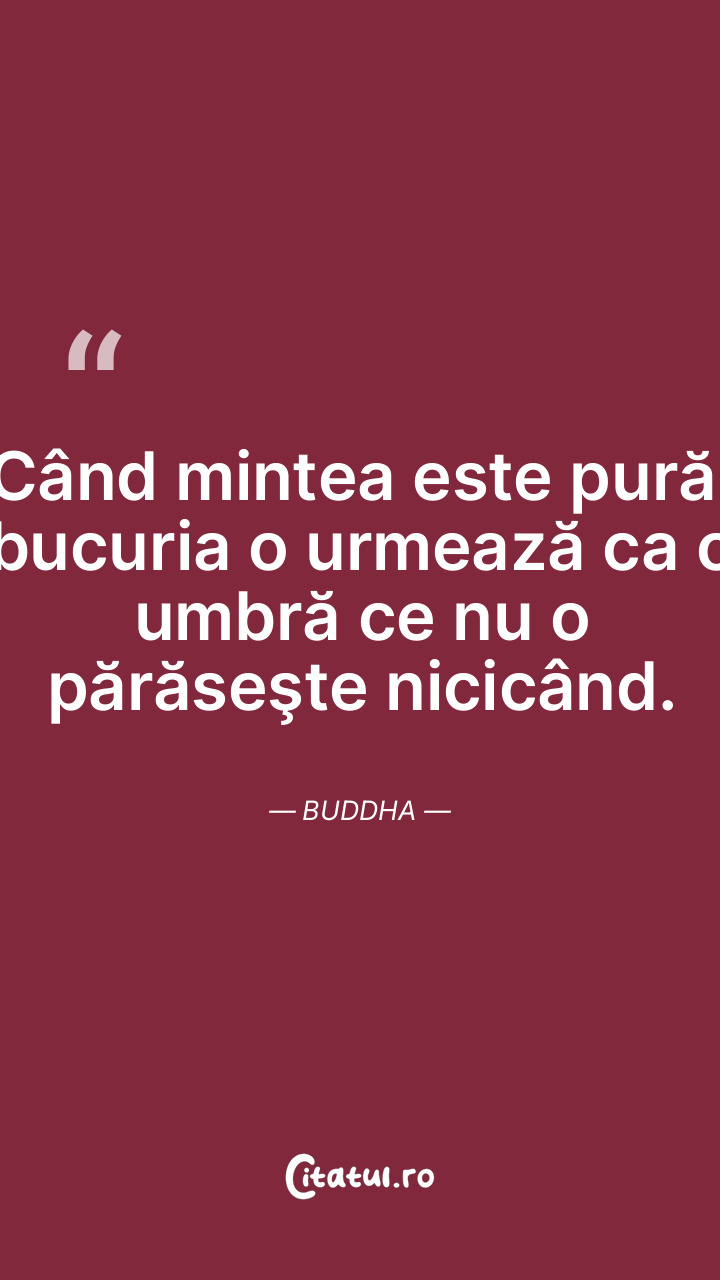 Când mintea este pură, bucuria o urmează ca o ... Citește tot citatul >