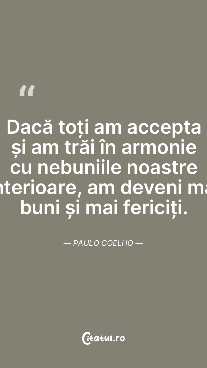 Dacă toți am accepta și am trăi în armonie cu ... Citește tot citatul >