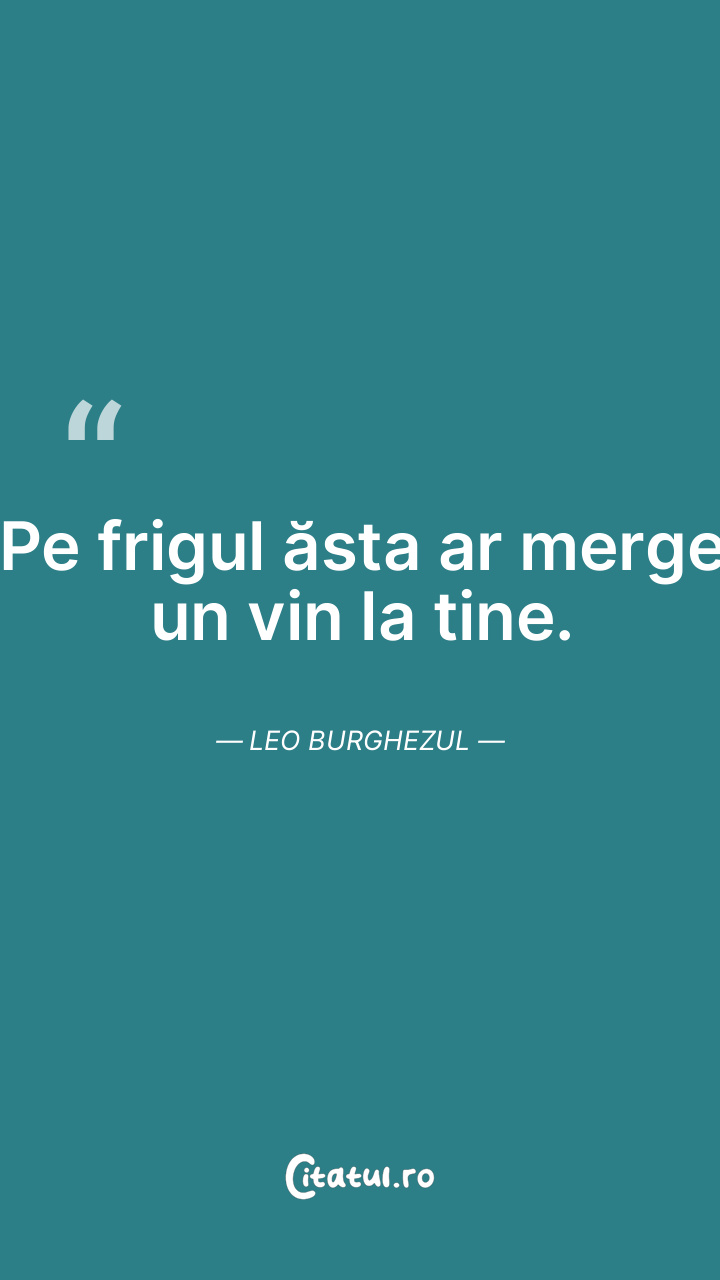 Pe frigul ăsta ar merge un vin la tine. Leo B ... Citește tot citatul >
