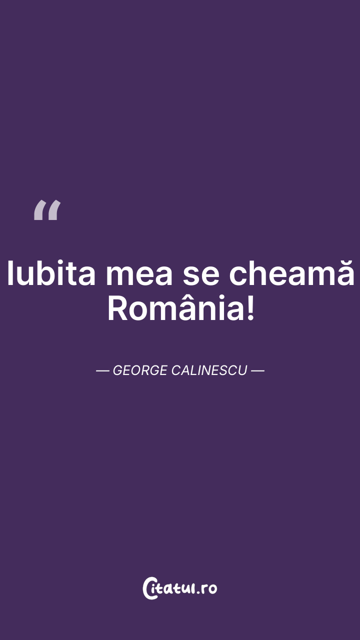 Iubita mea se cheamă România! George Calinesc ... Citește tot citatul >