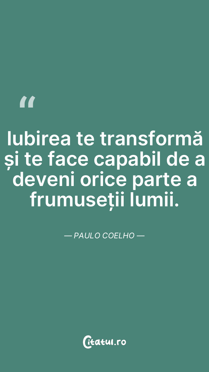 Iubirea te transformă și te face capabil de a ... Citește tot citatul >