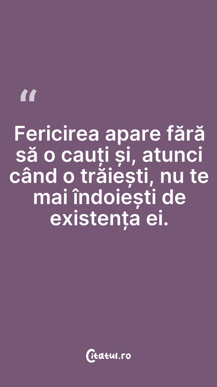 Fericirea apare fără să o cauți și, atunci câ ... Citește tot citatul >