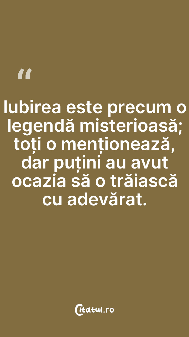 Iubirea este precum o legendă misterioasă; to ... Citește tot citatul >
