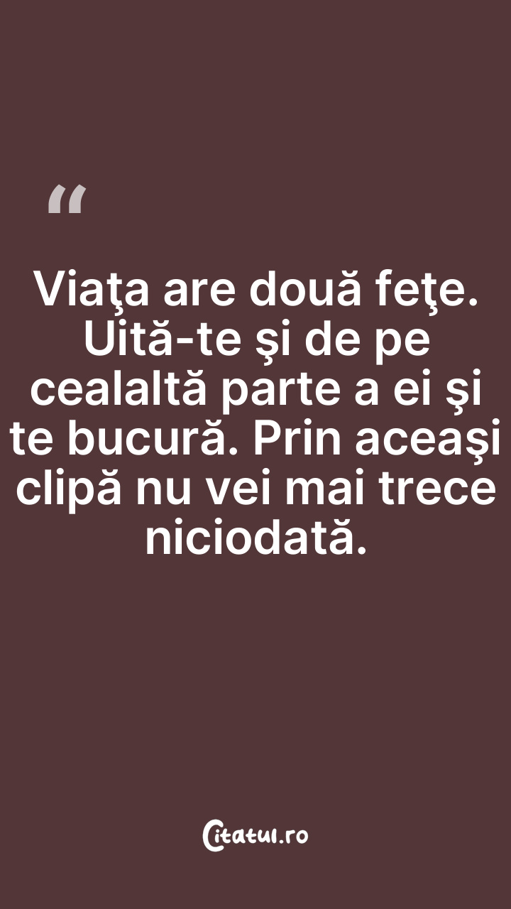 Viaţa are două feţe. Uită-te şi de pe cealalt ... Citește tot citatul >