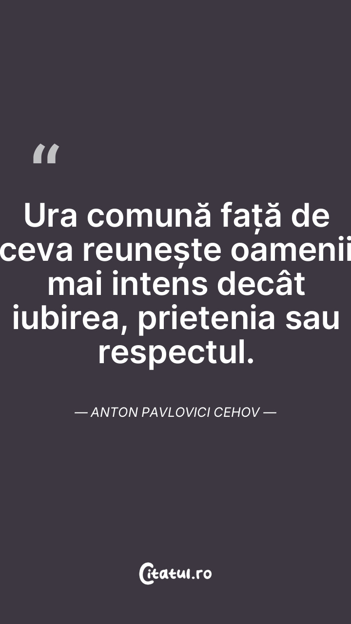 Ura comună față de ceva reunește oamenii mai ... Citește tot citatul >