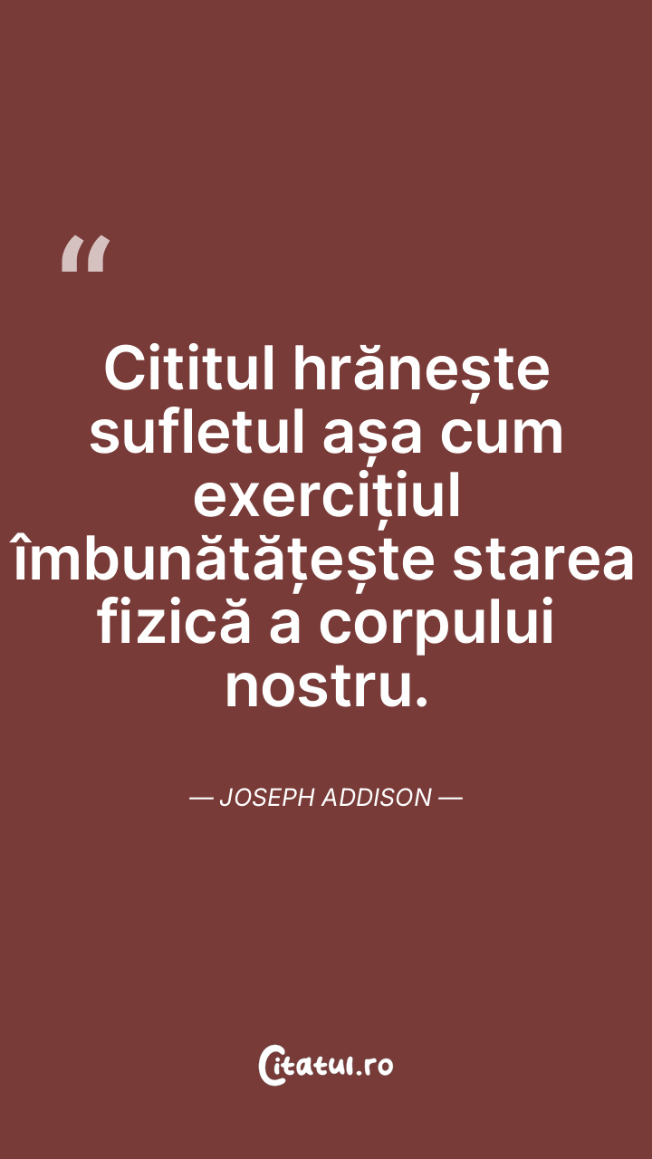 Cititul hrănește sufletul așa cum exercițiul ... Citește tot citatul >