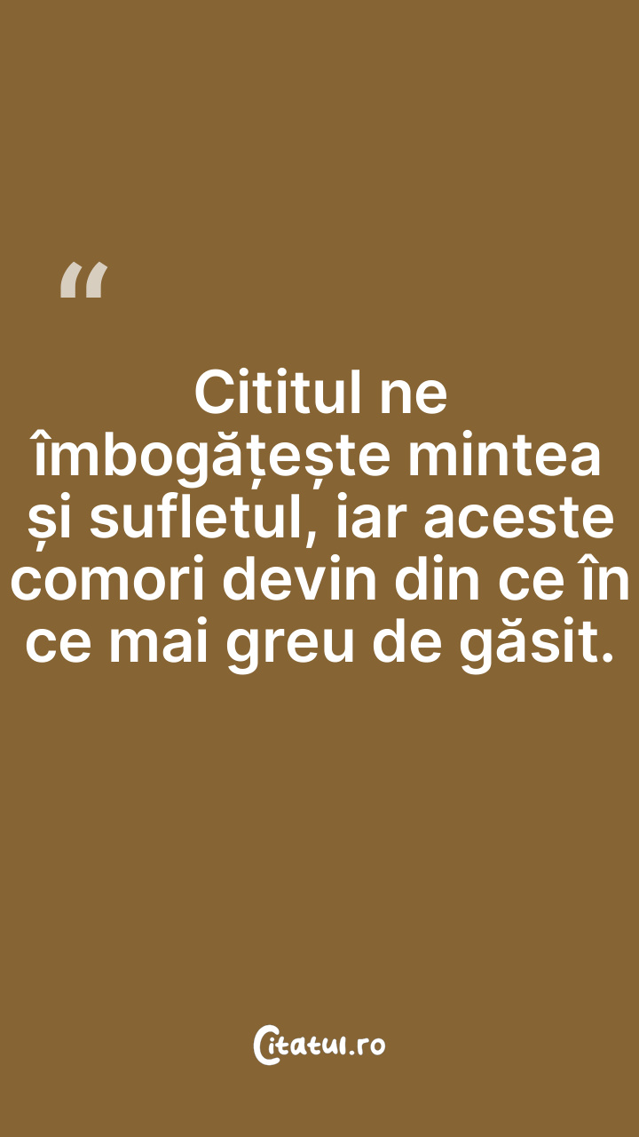Cititul ne îmbogățește mintea și sufletul, ia ... Citește tot citatul >