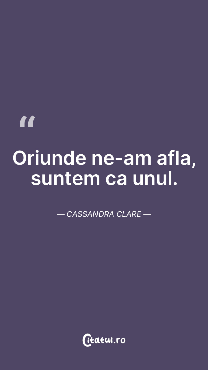Oriunde ne-am afla, suntem ca unul. Cassandra ... Citește tot citatul >