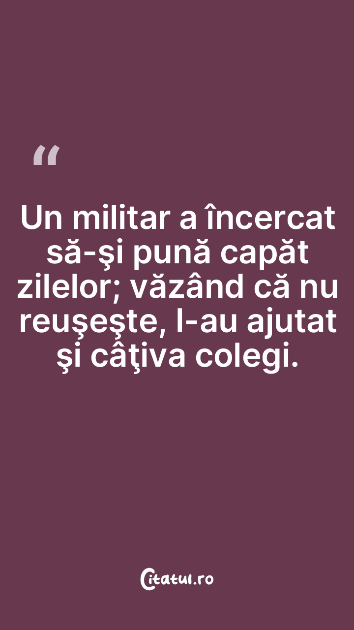 Un militar a încercat să-şi pună capăt zilelo ... Citește tot citatul >
