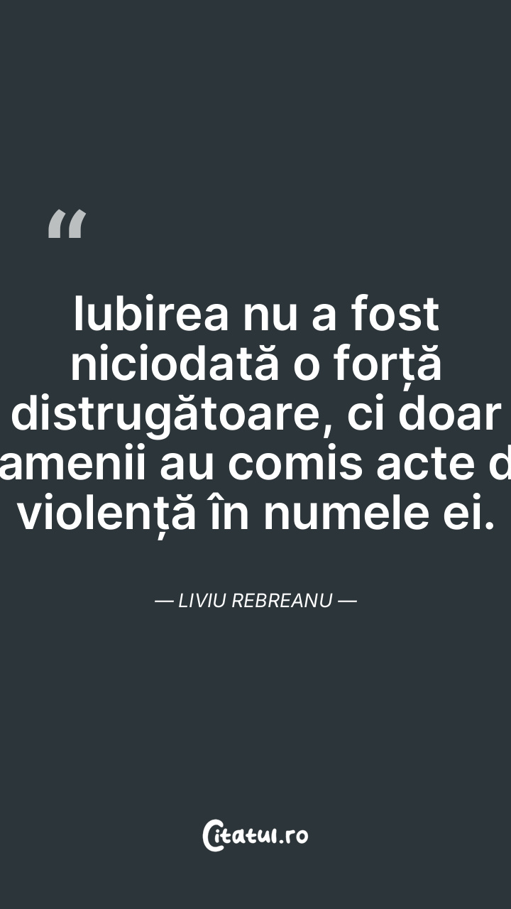 Iubirea nu a fost niciodată o forță distrugăt ... Citește tot citatul >