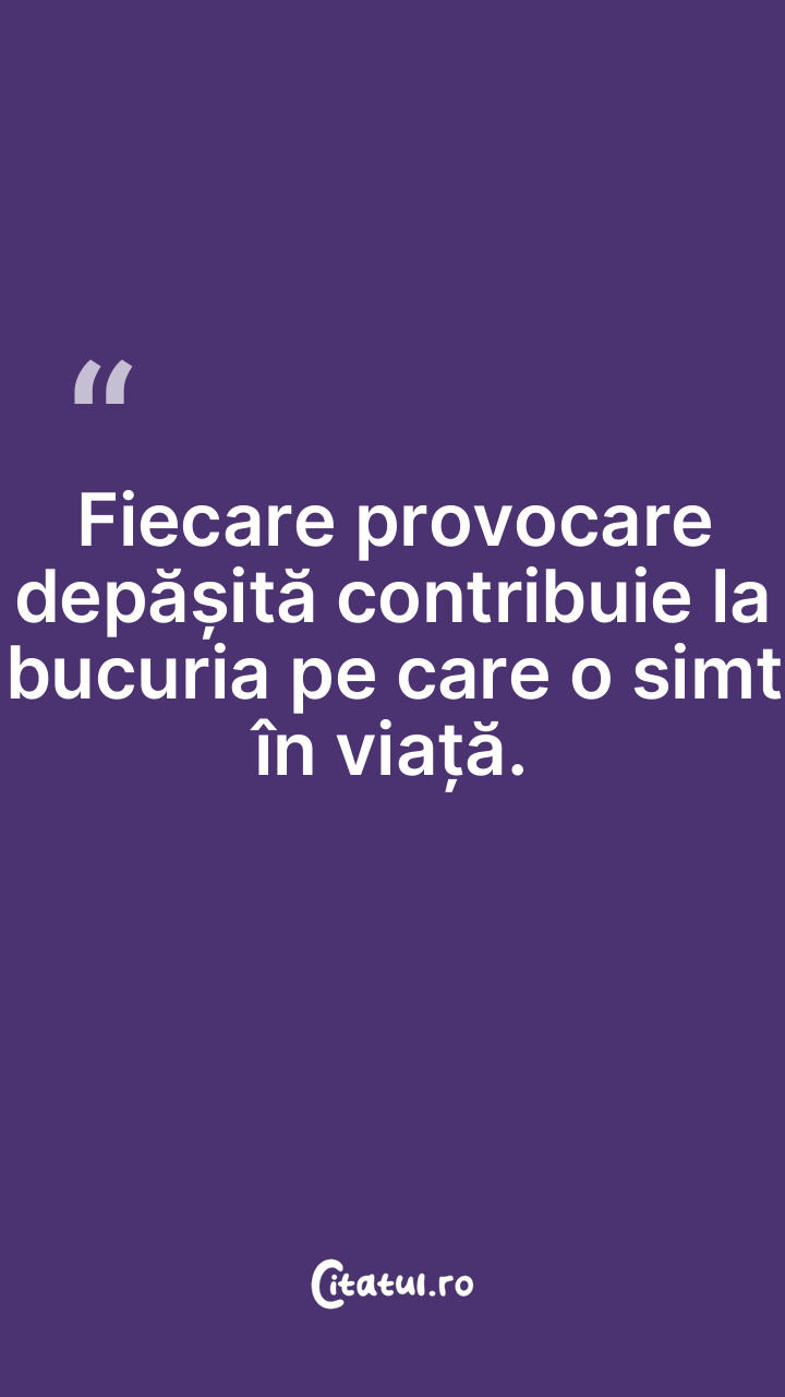 Fiecare provocare depășită contribuie la bucu ... Citește tot citatul >
