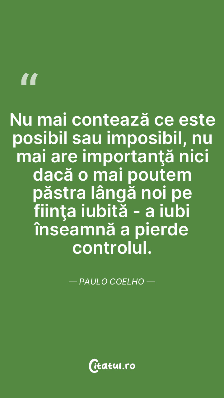 A iubi inseamna a pierde controlul. Paulo Coe ... Citește tot citatul >