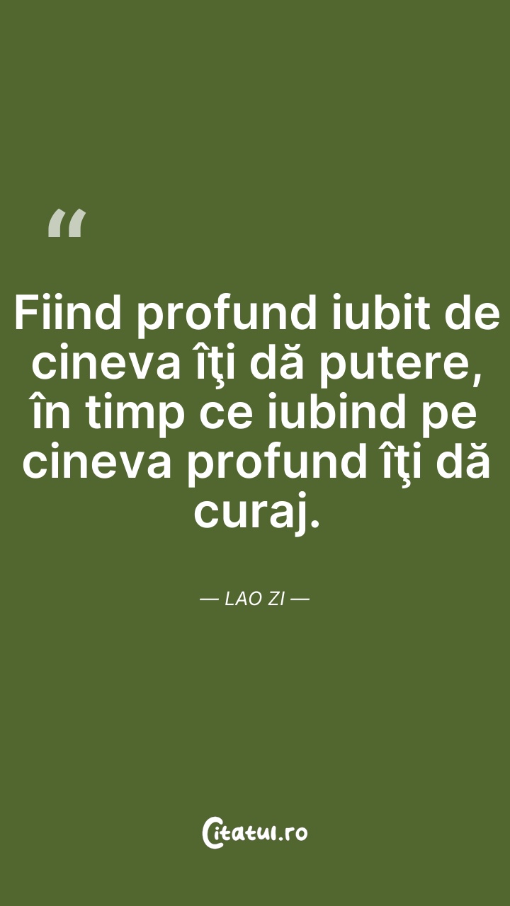 Fiind profund iubit de cineva îţi dă putere, ... Citește tot citatul >