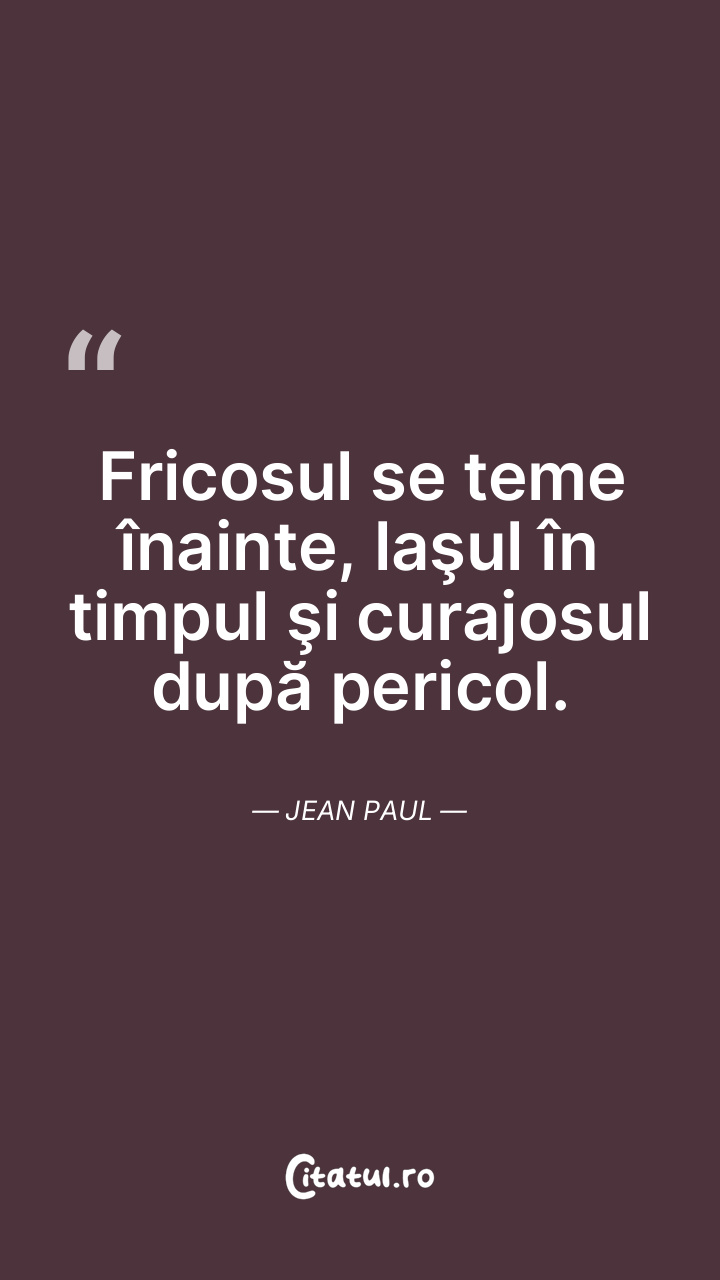 Fricosul se sperie înainte de primejdie, laşu ... Citește tot citatul >