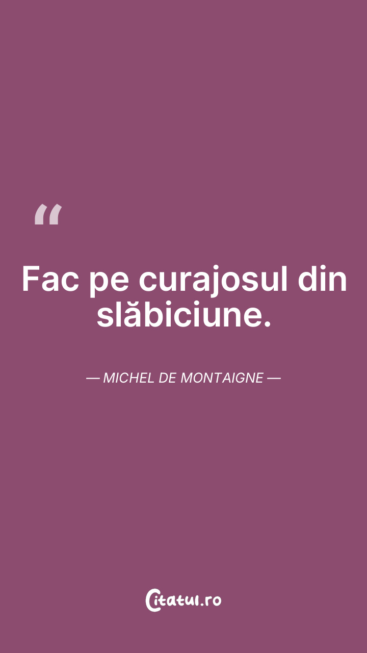 Fac pe curajosul din slăbiciune. Michel de Mo ... Citește tot citatul >