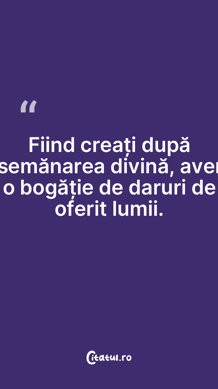 Ești o reflecție a divinității, iar prin daru ... Citește tot citatul >
