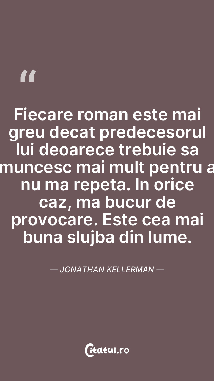 Fiecare roman este mai greu decat predecesoru ... Citește tot citatul >
