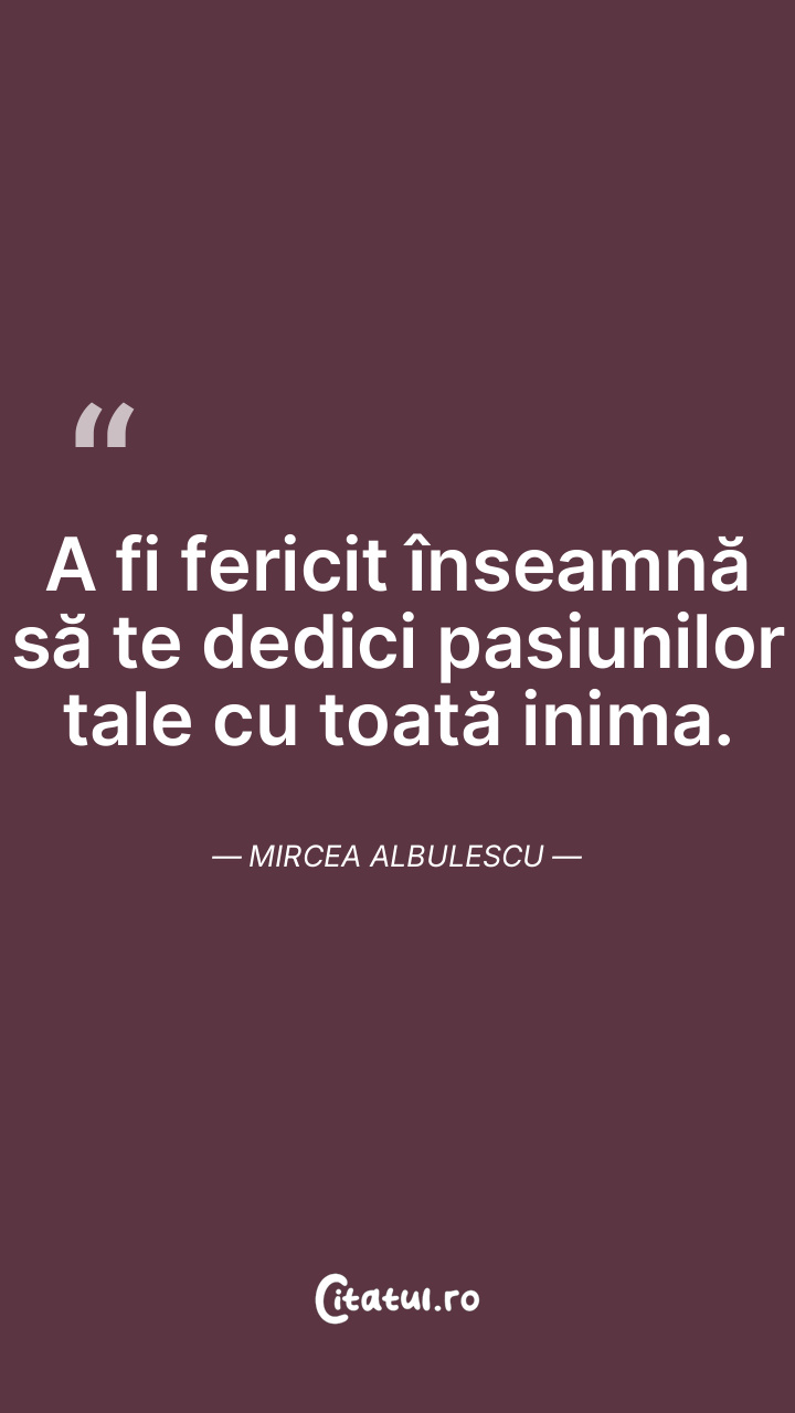 A fi fericit înseamnă să te dedici pasiunilor ... Citește tot citatul >