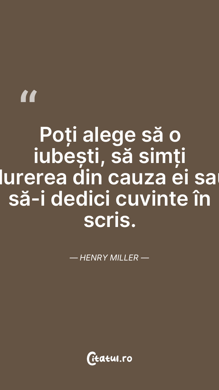 Poți alege să o iubești, să simți durerea din ... Citește tot citatul >