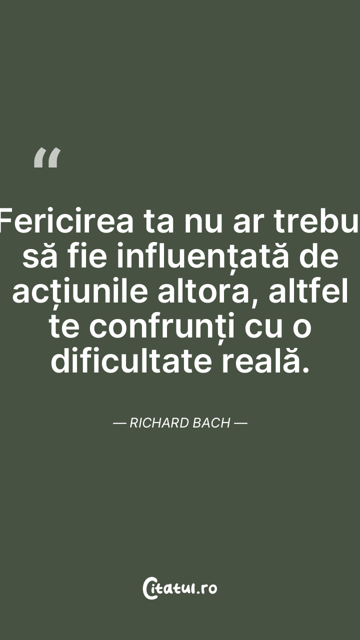 Fericirea ta nu ar trebui să fie influențată ... Citește tot citatul >