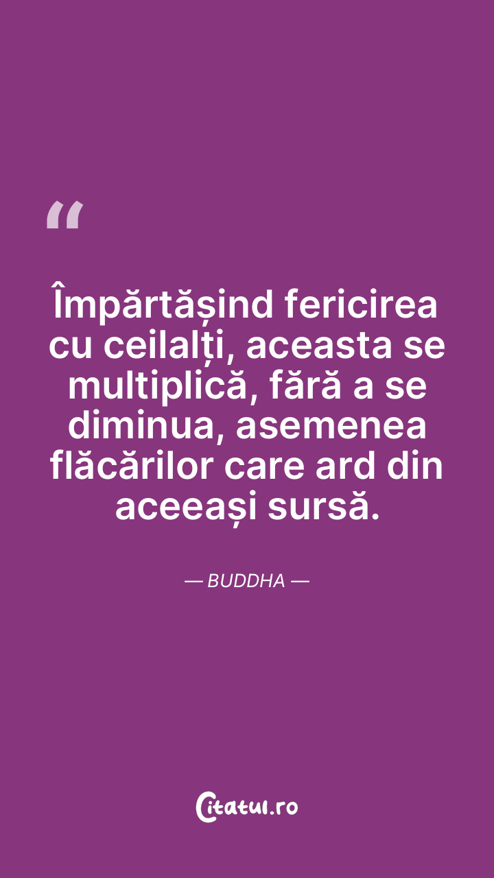 Împărtășind fericirea cu ceilalți, aceasta se ... Citește tot citatul >