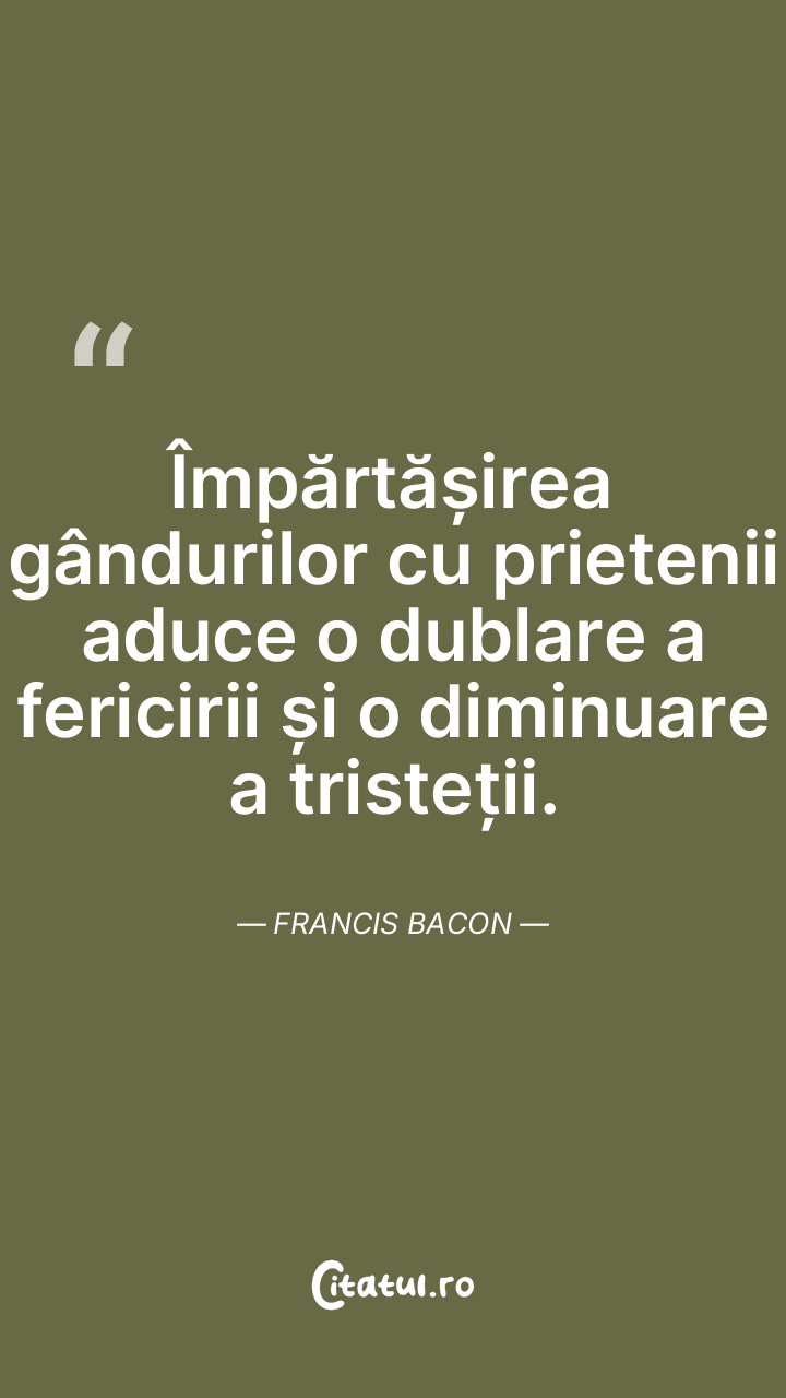 Împărtășirea gândurilor cu prietenii aduce o ... Citește tot citatul >