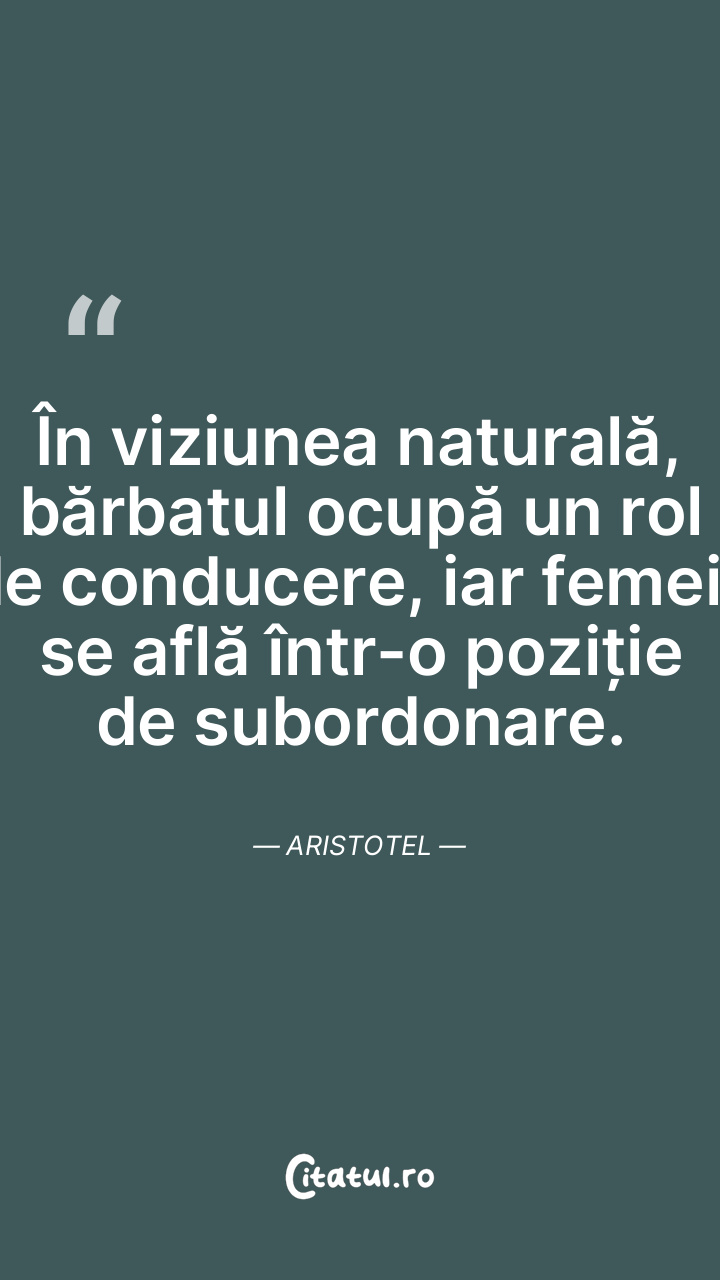 În viziunea naturală, bărbatul ocupă un rol d ... Citește tot citatul >