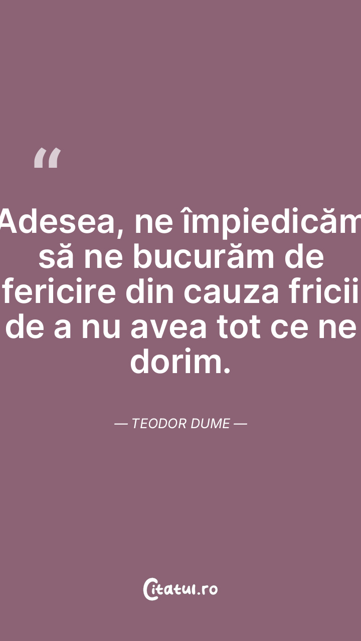 Adesea, ne împiedicăm să ne bucurăm de ferici ... Citește tot citatul >