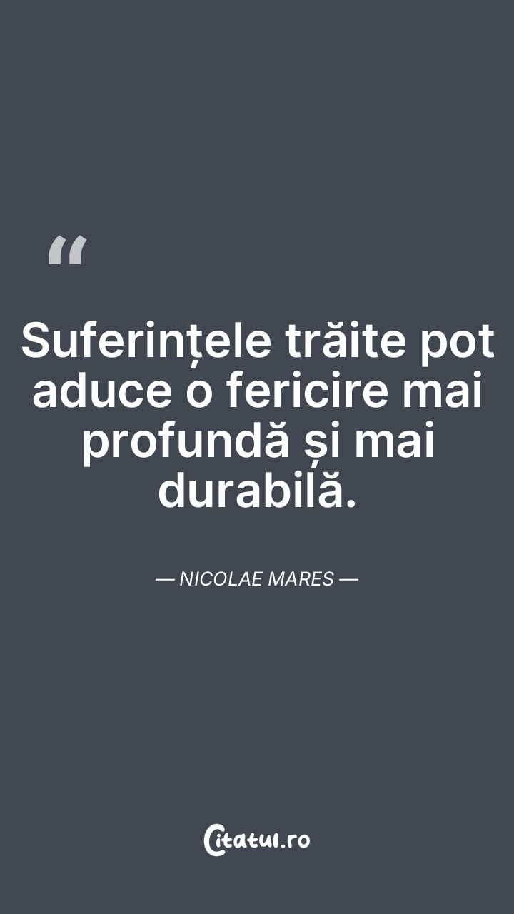 Suferințele trăite pot aduce o fericire mai p ... Citește tot citatul >