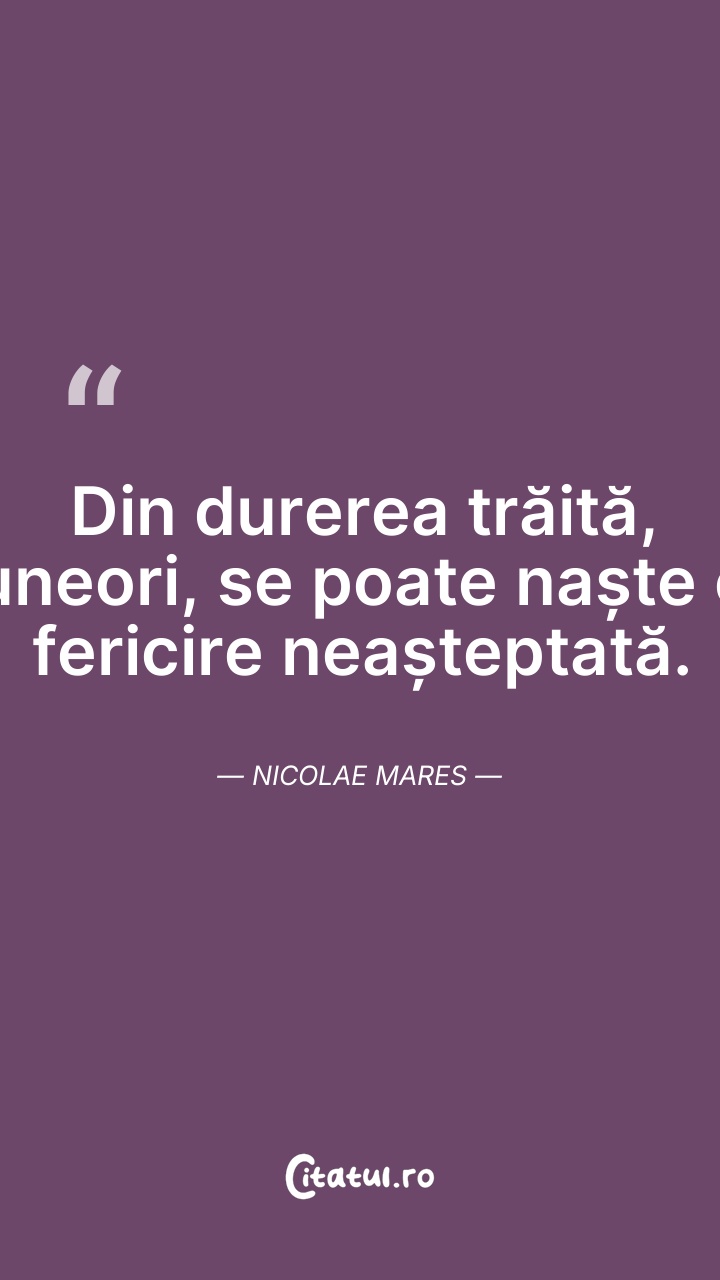 Din durerea trăită, uneori, se poate naște o ... Citește tot citatul >